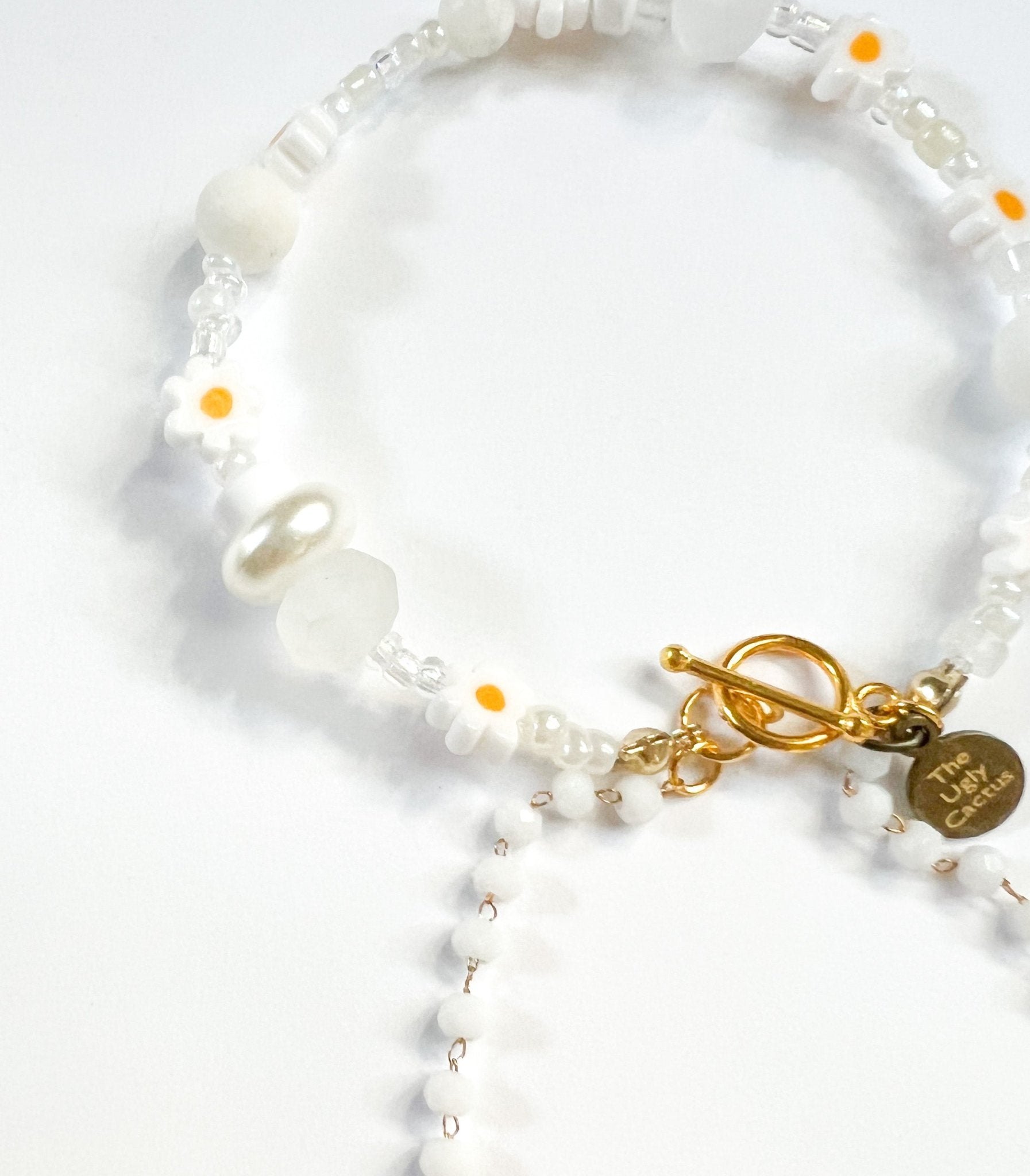 Daisies and Blooms mixed media bracelet is carefully designed with care.